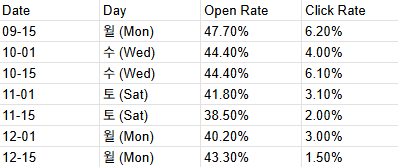 뉴스레터 발행은 요일에 영향을 미칠까?